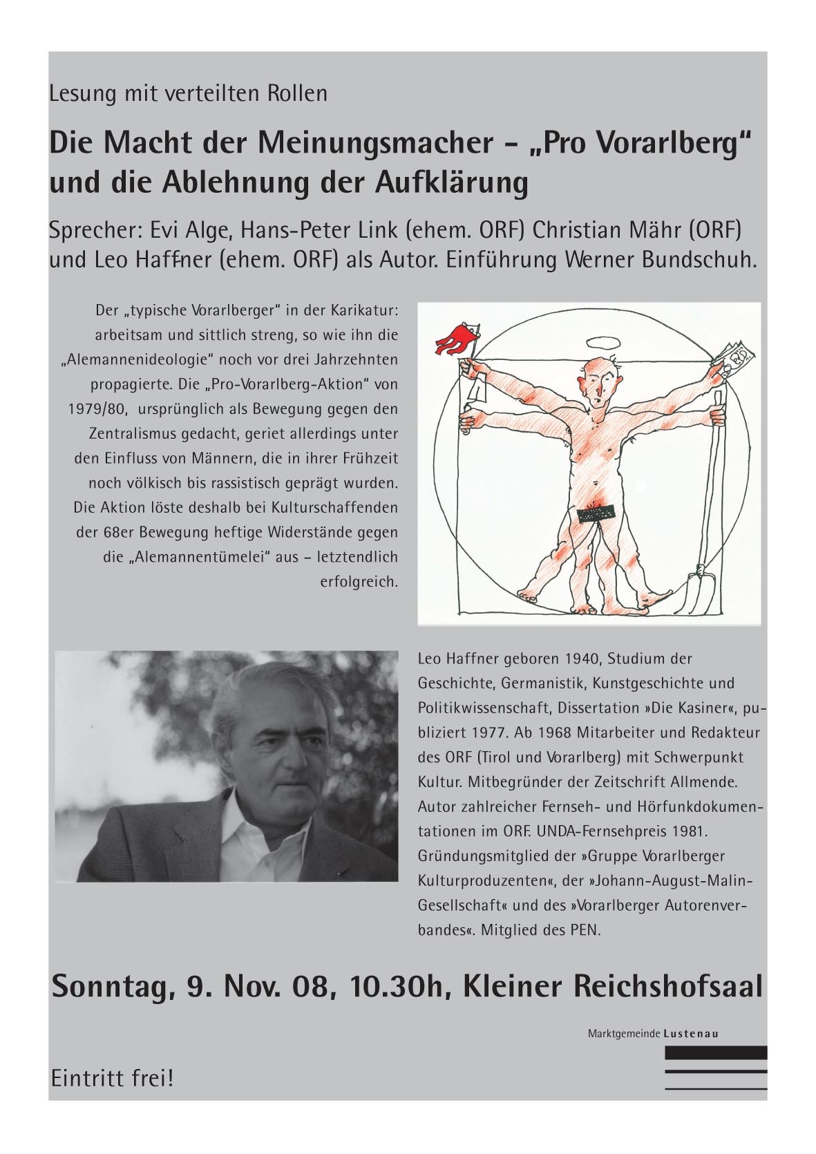 09.11.2008 - Lesung von Dr. Leo Haffner: Die Macht der Meinungsmacher - "Pro Vorarlberg" und die Ablehnung der Aufklärung